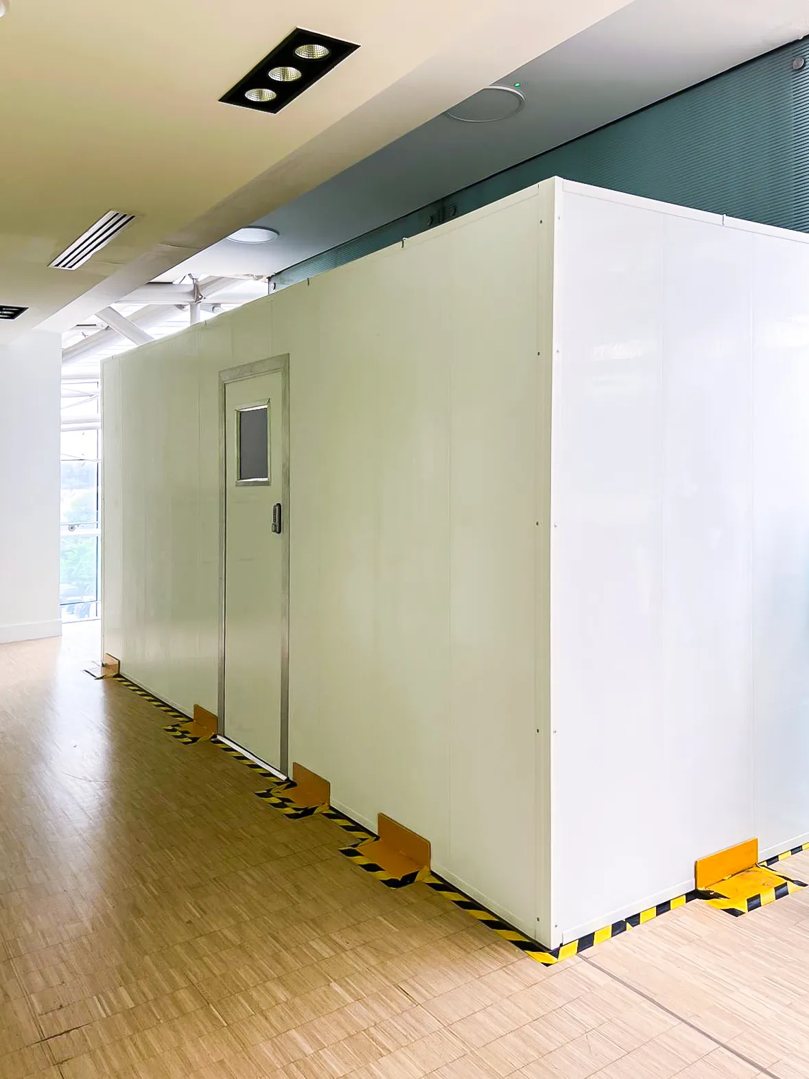 Cost-effective and robust. Constructed from timber studwork and ply facing. Ideal for general lift lobby segregation.